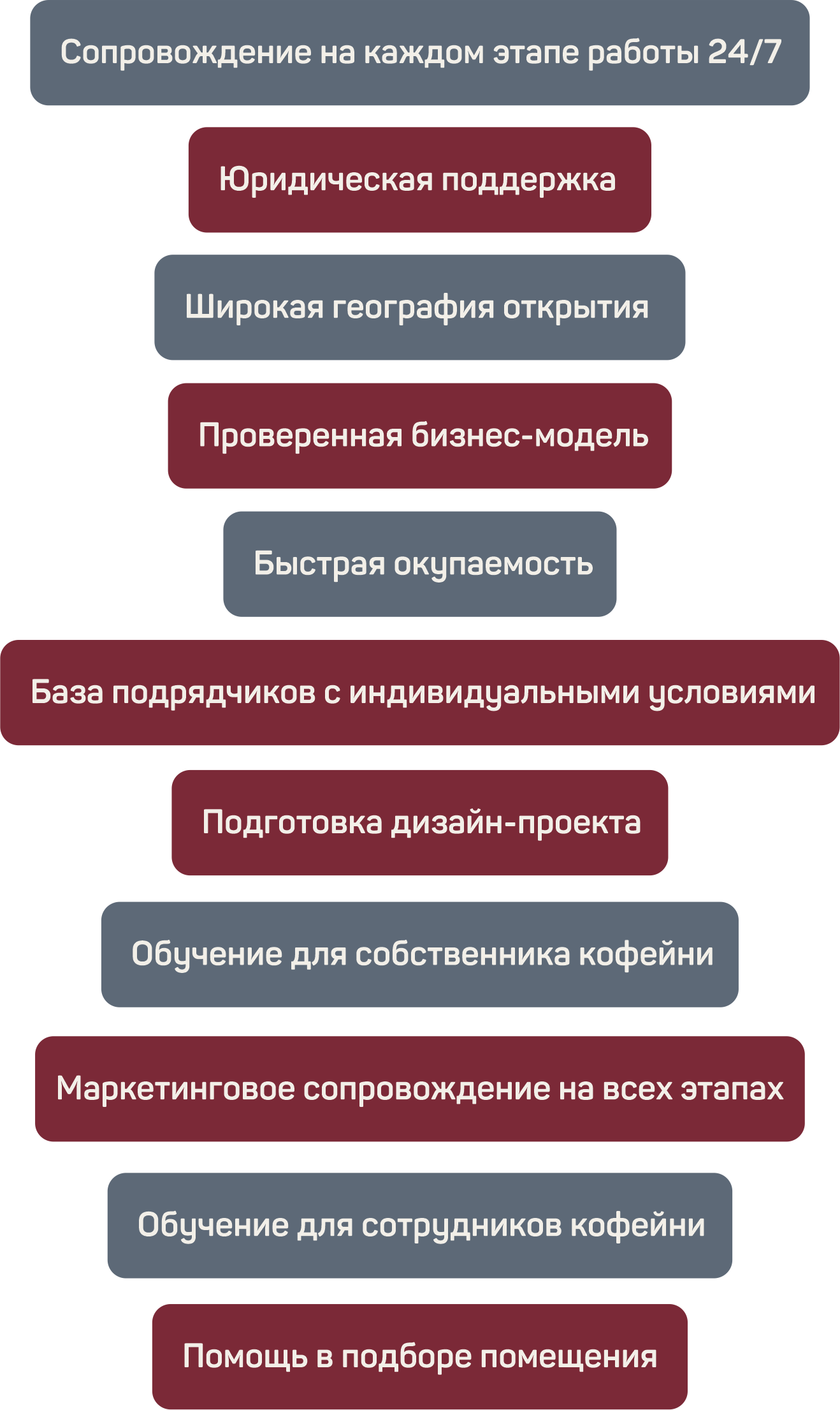 Я была знакома знакома с основателем сети лично, соответственно, есть определенный уровень доверия, что немаловажно когда в этом бизнесе никогда не работала. Концепция, любовь к людям, животным, идея идеального напитка, это Зацепило больше всего!